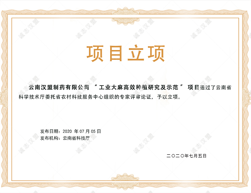 云南省工業(yè)大麻種植許可證(科學(xué)研究種植)